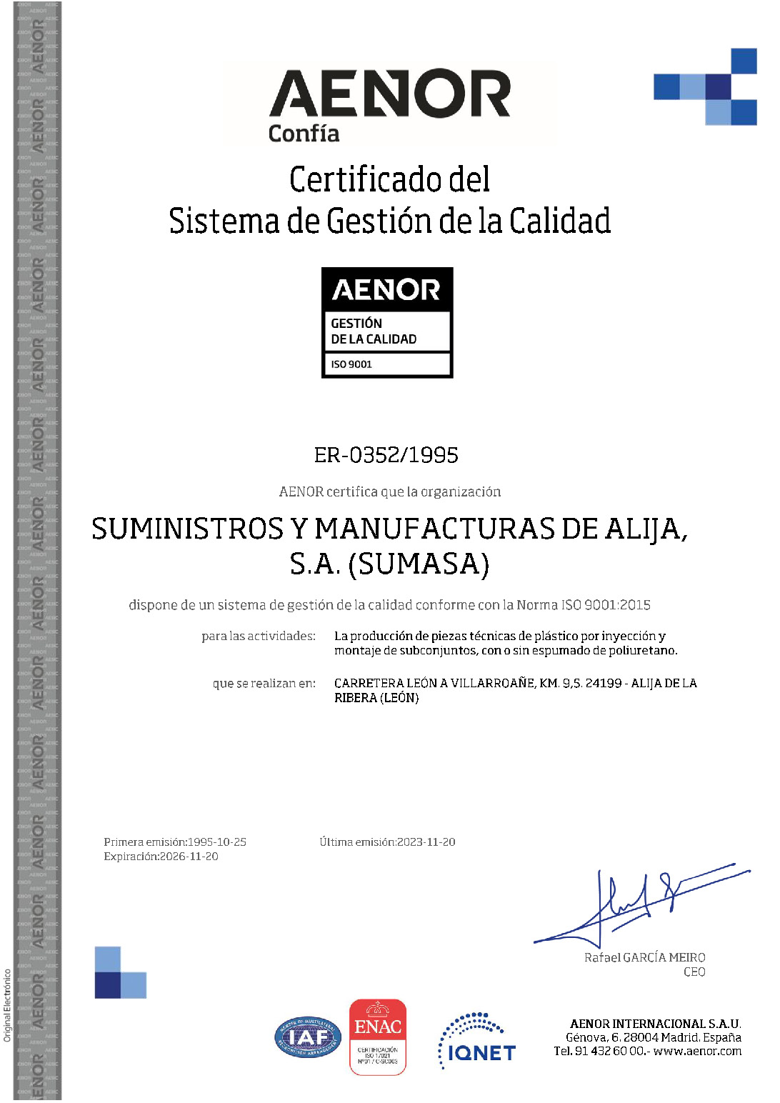 Detalles de la Certificación AENOR ISO 9001: